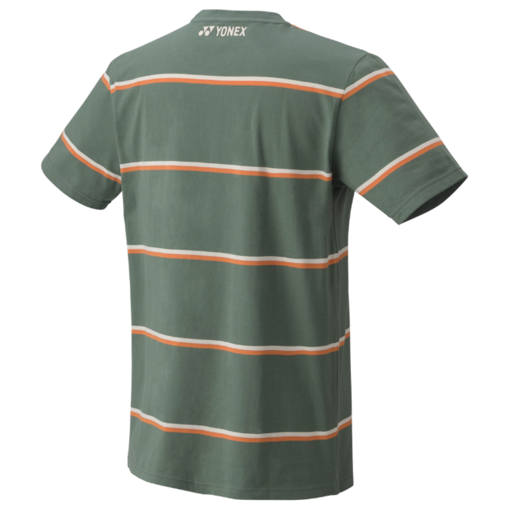 Проста на вигляд, але дуже зручна, якісна футболка Yonex 16678 Olive, яку можна носити в повсякденному житті. Оливковий колір футболки промежовують тонкі помаранчеві та білі смуги.
