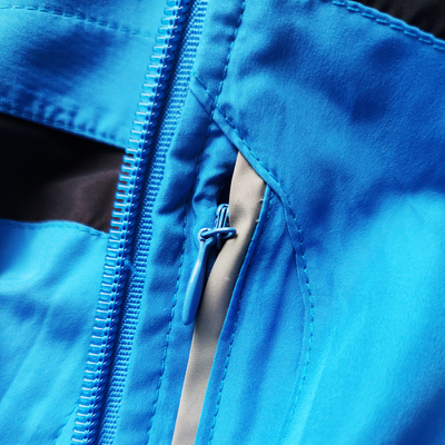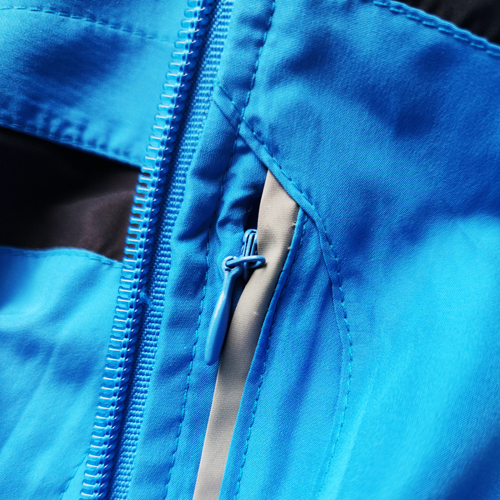 Кофта має дві кишені по боках та одну кишеню на грудях. Красивий синій колір доповняють чорні вставки.