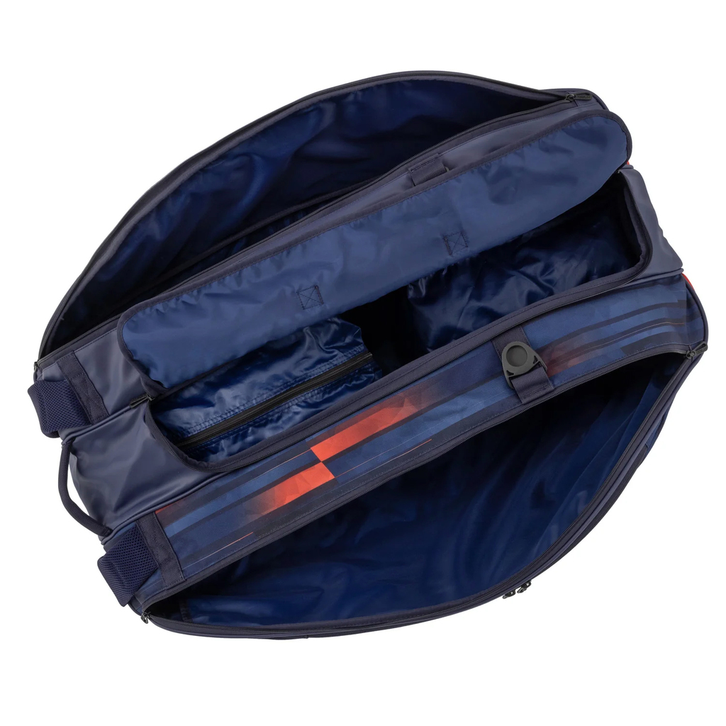 Просторі відділення можуть комфортно вмістити до 9 ракеток та захистити їх від пошкоджень. Гарна організація простору має вирішальне значення для підтримки ракеток в ідеальному стані та максимальній продуктивності.